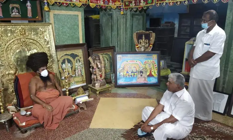 Puducherry honorable minister Kamalakannan get blessings from Guru Mahasannidhanam of DHarmapuram Adheenam.
