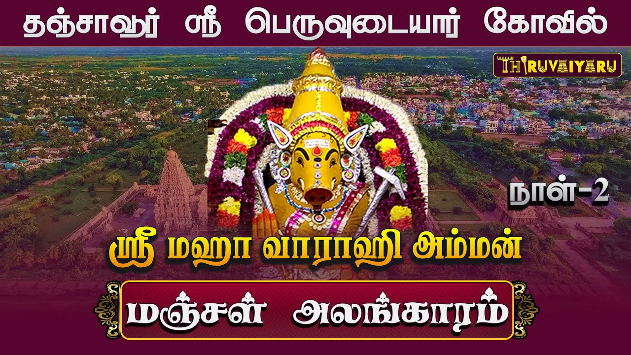 குறிப்பு : தஞ்சை பெரிய கோயில் என்றழைக்கப்படும் ஸ்ரீ பெரியநாயகி அம்மன் உடனாகிய பெருவுடையார் கோயில் உலக பிரசித்தி பெற்றது. இந்தக் கோயிலில் தனி சன்னதியில் ஸ்ரீ மஹா வாராஹி அம்மன் வீற்றிருந்து அருள்பாலித்து வருகிறார். இந்த நிலையில், மஹாவாராஹி அம்மனுக்கு ஆண்டுதோறும் ஆஷாட நவராத்திரி விழா வெகு சிறப்பாக கொண்டாடப்பட்டு வருகிறது.