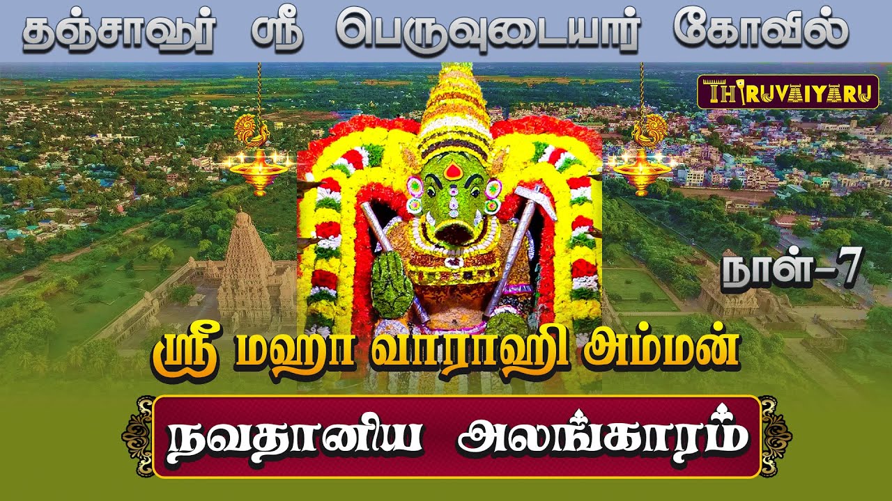 குறிப்பு : தஞ்சை பெரிய கோயில் என்றழைக்கப்படும் ஸ்ரீ பெரியநாயகி அம்மன் உடனாகிய பெருவுடையார் கோயில் உலக பிரசித்தி பெற்றது. இந்தக் கோயிலில் தனி சன்னதியில் ஸ்ரீ மஹா வாராஹி அம்மன் வீற்றிருந்து அருள்பாலித்து வருகிறார். இந்த நிலையில், மஹாவாராஹி அம்மனுக்கு ஆண்டுதோறும் ஆஷாட நவராத்திரி விழா வெகு சிறப்பாக கொண்டாடப்பட்டு வருகிறது.