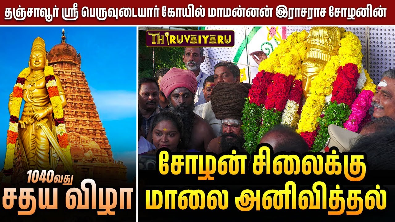 🪔🙏தஞ்சாவூர் ஸ்ரீ பெருவுடையார் கோயில் 1040வது சதய விழா மாமன்னன் இராஜராஜ சோழன் சிலைக்கு மாலை அனிவித்தல் | Thanjavur Sri Peruvudaiyar Temple 1040th Sadhaya Vizha Great Raja Raja Cholan Garlanding of the Chola statue🌸🪔