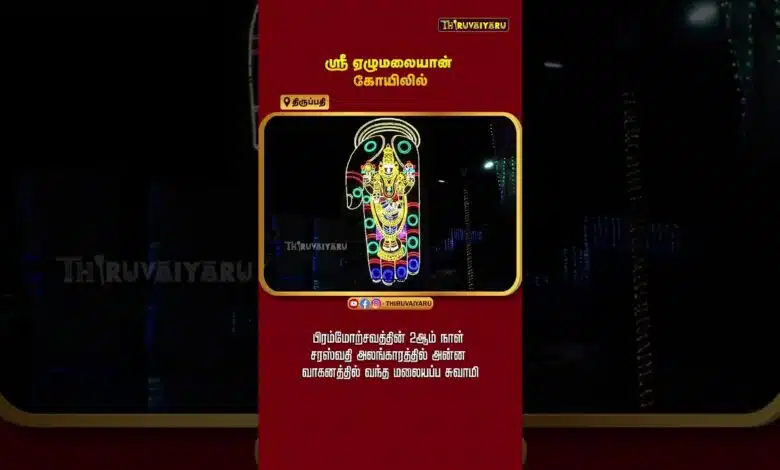 திருப்பதி ஸ்ரீ ஏழுமலையான் கோவிலில் பிரம்மோற்சவத்தில் இரண்டாம் நாள் சரஸ்வதி அலங்காரத்தில் அன்ன வாகனத்தில் மலையப்ப சுவாமி | திருவையாறு