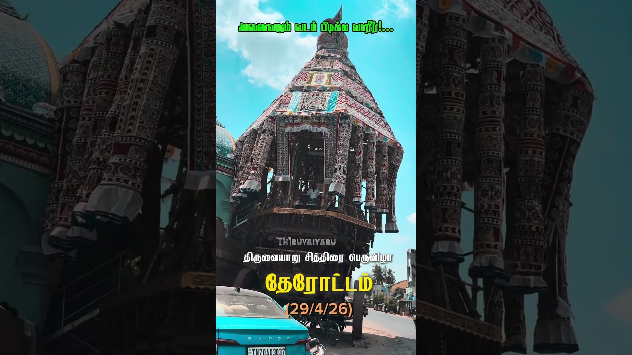 திருவையாறு தேரோட்டம் (29/4/26) அனைவரும் வடம் பிடிக்க வாரீர்!…#thiruvaiyaru #aiyarappar #trendingreel thiruvaiyaru.in 4 hours ago ThiruvaiyaruSun, April 26, 2026 8:23amURL:Embed: