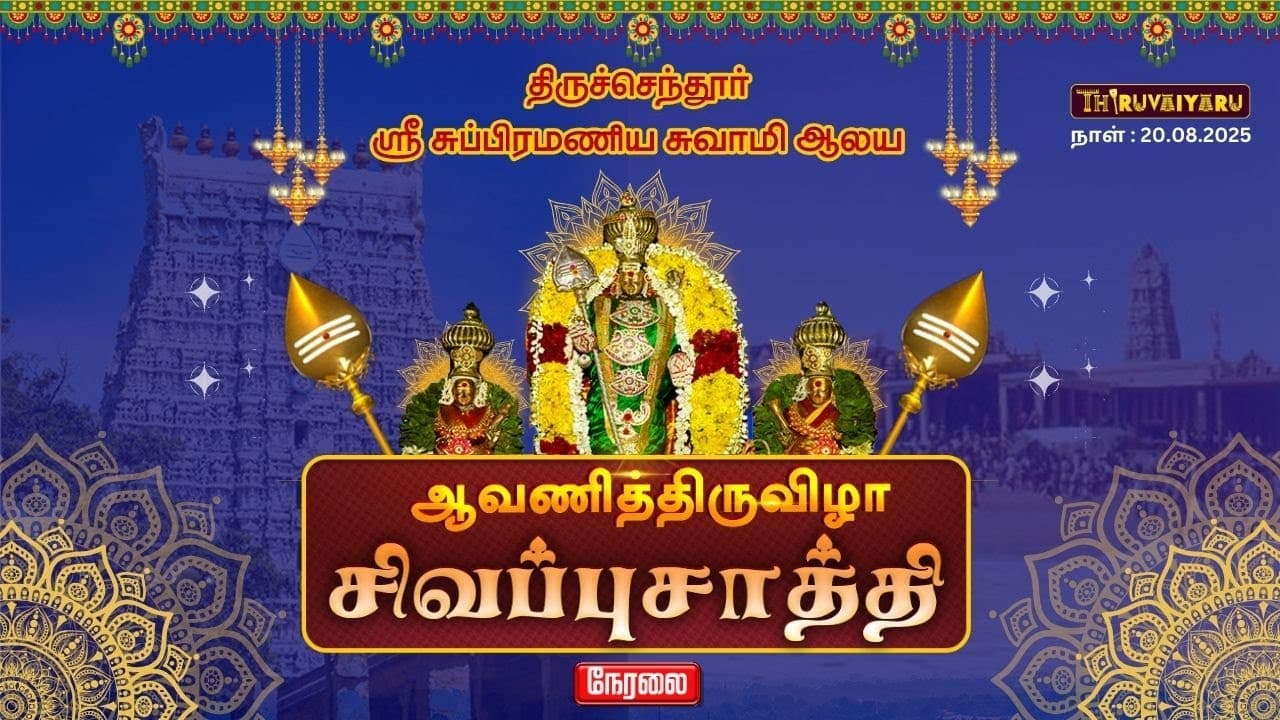 ЁЯФ┤роирпЗро░ро▓рпИ : родро┐ро░рпБроЪрпНроЪрпЖроирпНродрпВро░рпН | ро╕рпНро░рпА роЪрпБрокрпНрокро┐ро░роорогро┐роп роЪрпБро╡ро╛рооро┐ роЖро▓роп | роЖро╡рогро┐родрпНродро┐ро░рпБро╡ро┐ро┤ро╛ | роЪро┐ро╡рокрпНрокрпБроЪро╛родрпНродро┐ | родро┐ро░рпБро╡рпИропро╛ро▒рпБ