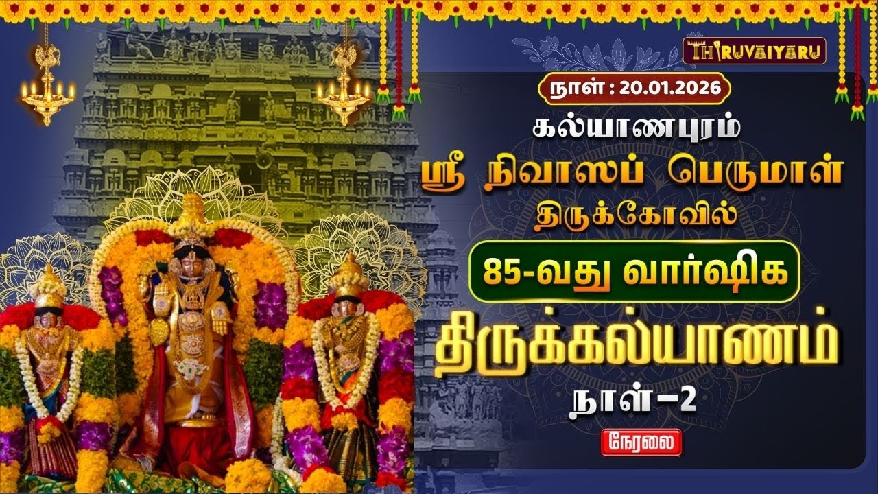 கல்யாணபுரம் ஸ்ரீ நிவாஸப் பெருமாள் ஆலயத்தில் நடைபெறும் 85-வது வார்ஷிக திருக்கல்யாண உற்சவம் – நாள் 2 இறைவன் ஸ்ரீ நிவாஸப் பெருமாள் அருளோடு, பக்தர்கள் அனைவரும் நேரலையில் தரிசனம் பெற அழைக்கப்படுகிறார்கள்.