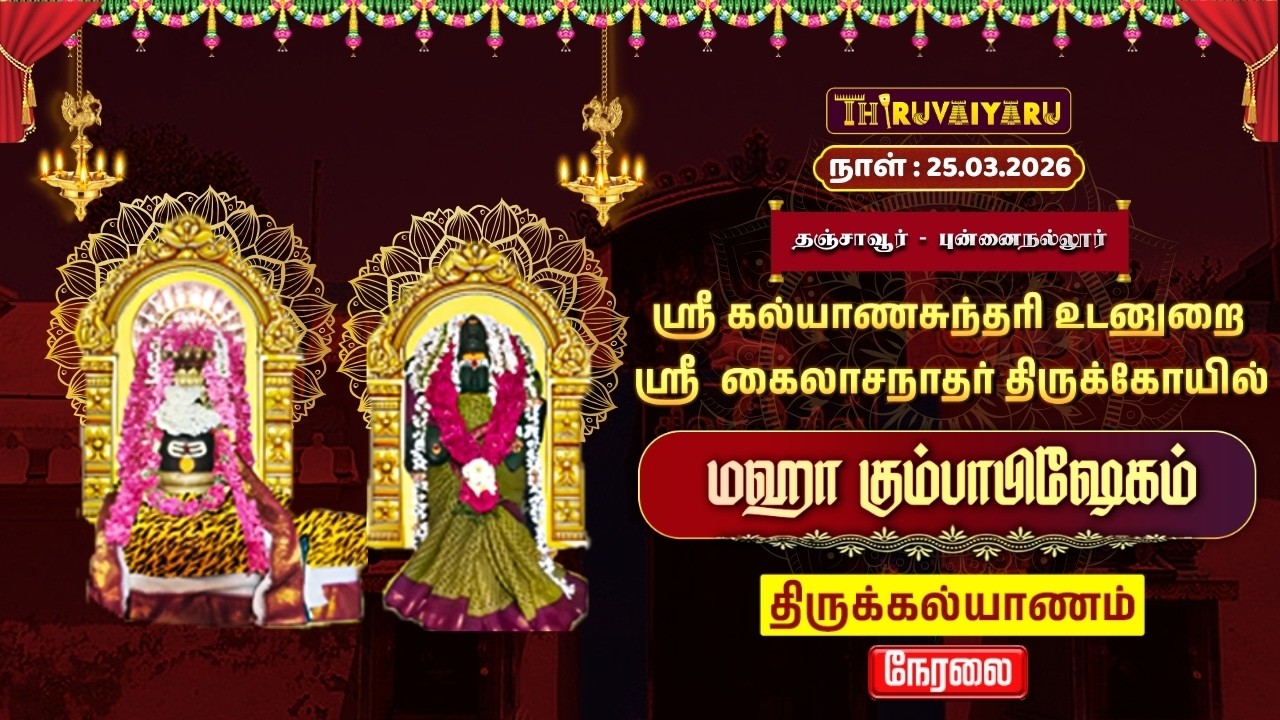தஞ்சாவூர் புன்னைநல்லூர் ஸ்ரீ கைலாசநாதர் ஆலயத்தில் நடைபெறும் மஹா கும்பாபிஷேகம் மற்றும் திருக்கல்யாணம் நிகழ்வுகளை நேரலையில் காணுங்கள்.