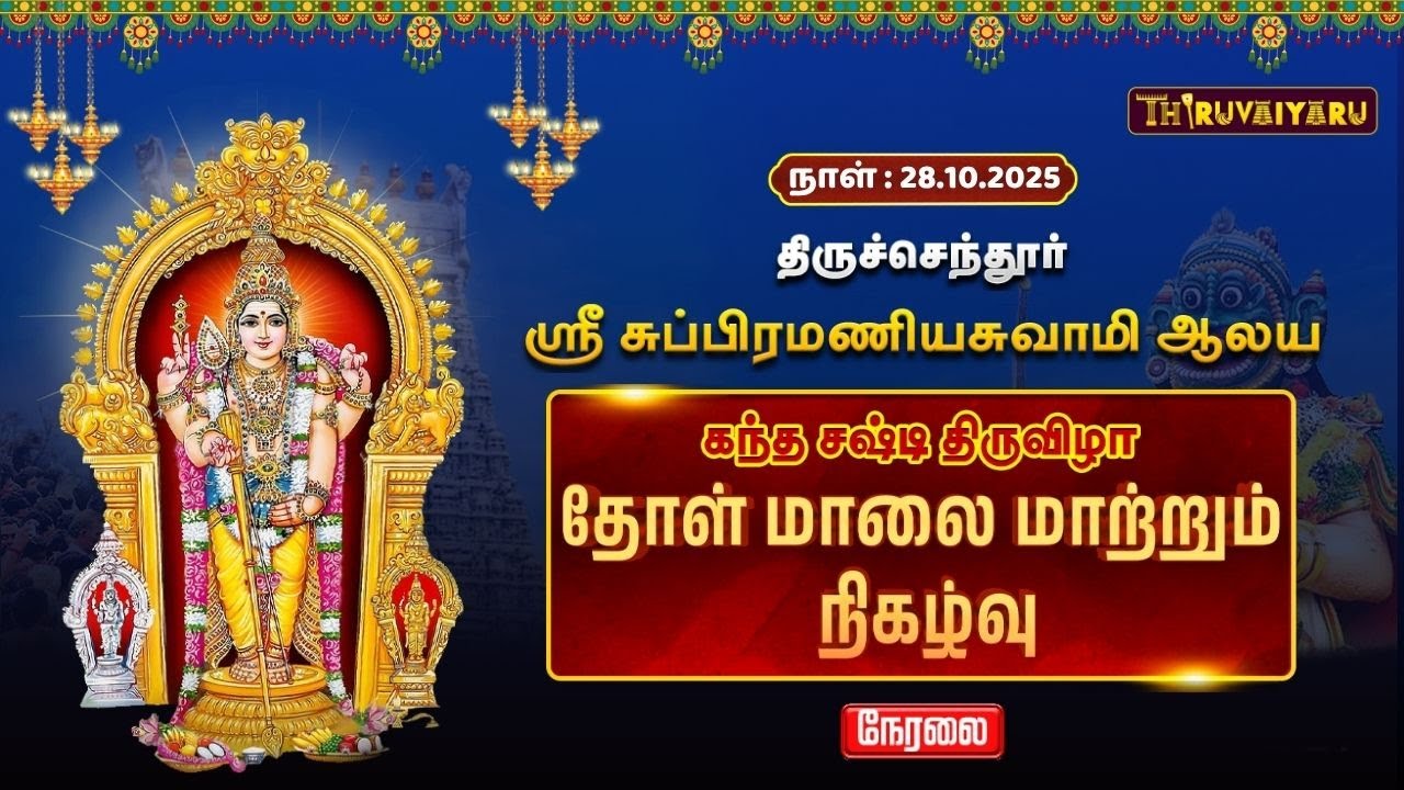 #2025 #live #devotionallive #thiruvaiyaru #dharumaiadheenam #திருவையாறு #தருமைஆதீனம் #திருச்செந்தூர் #சுப்பிரமணியசுவாமி #முருகன் #தோள்மாலைமாற்று #கந்தசஷ்டி #Thiruchendur #SubramanyaSwamy #Murugan #KandhaSashti #TholMaalaiMaatrum #MuruganLive #DevotionalLive #Bhakti #TempleFestival #MuruganBlessings