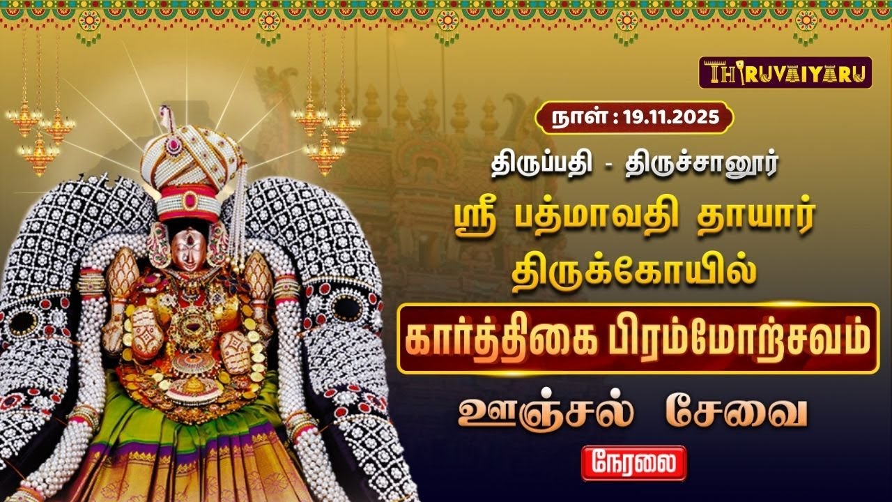 🪔திருப்பதி – திருச்சானூர் ஸ்ரீ பத்மாவதி தாயார் ஆலயத்தில் நடைபெறும் கார்த்திகை பிரம்மோற்சவத்தின் உஞ்சல் சேவை நேரலை. இன்று அம்பாளின் திருவாபரண அலங்காரம், மங்கள இசை, வேதகோஷங்கள் மற்றும் திருவிழா உற்சவத்தின் அனைத்து சடங்குகளும் நடைபெறும்.💫🙏✨