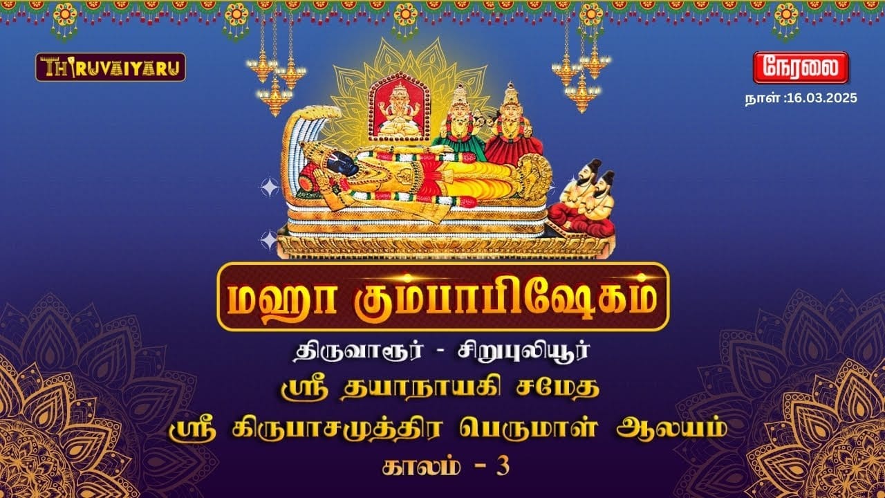 🔴நேரலை – 108 திவ்ய தேசங்களில் இருபத்தி நான்காவது தலம் | திருவாரூர் | சிறுபுலியூர் | ஸ்ரீ தயாநாயகி சமேத | ஸ்ரீ கிருபாசமுத்திர பெருமாள் ஆலய | மஹா கும்பாபிஷேகம் | காலம் – 3 | திருவையாறு