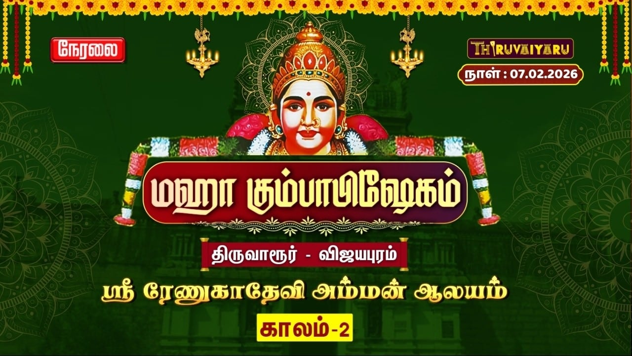 ✨🙏 திருவாரூர் – விஜயபுரம் ஸ்ரீ ரேணுகாதேவி அம்மன் ஆலய மஹா கும்பாபிஷேகம் – காலம் 2 புனித நிகழ்வை பக்தர்களுக்காக நேரலையாக (LIVE) ஒளிபரப்புகிறோம்.