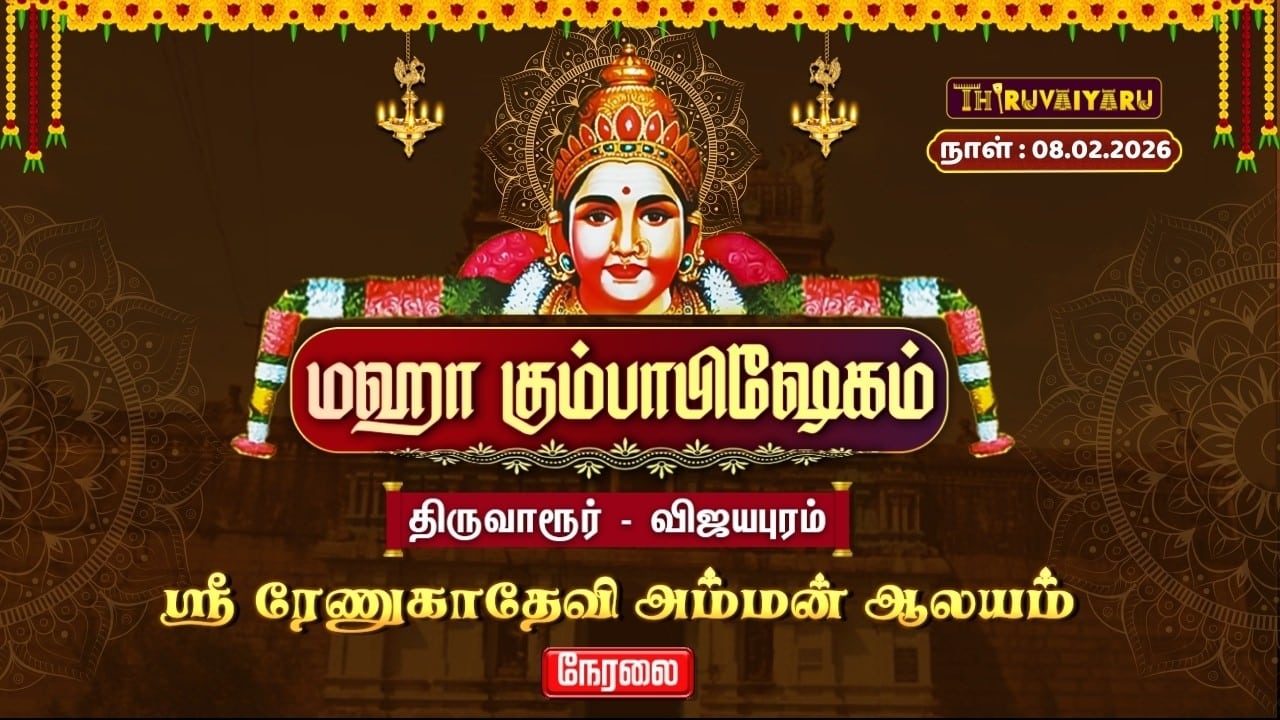 ✨🙏 திருவாரூர் – விஜயபுரம் ஸ்ரீ ரேணுகாதேவி அம்மன் ஆலய மஹா கும்பாபிஷேகம் – சுவாமி புறப்பாடு புனித நிகழ்வை பக்தர்களுக்காக நேரலையாக (LIVE) ஒளிபரப்புகிறோம்.