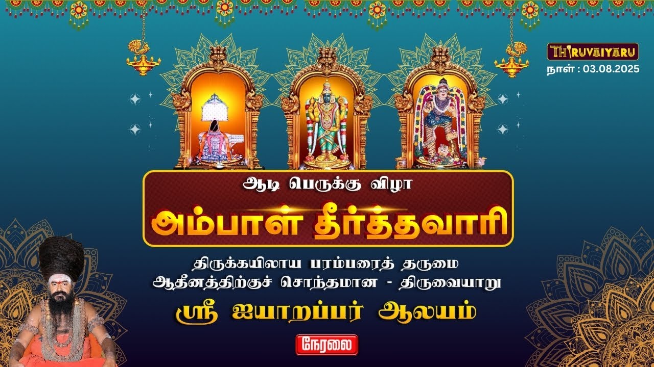 #2025 #live #devotionallive #திருவையாறு #தருமைஆதீனம் #திருவையாறு #ஐயாறப்பர் #ஆடி #பெருக்குவிழா #ஆடிபெருக்கு #அம்பாள் #தீர்த்தவாரி #live #நேரலை #thiruvaiyaru #dharumai_aadheenam #thiruvaiyaru #aiyarappar #temple #thirukovil #aadimatham #aadiperuku #thiruvizha #festival #ambal #theerthavari #ஆலயவழிபாடு #ஆலயதரிசனம் #ஆன்மிகம்