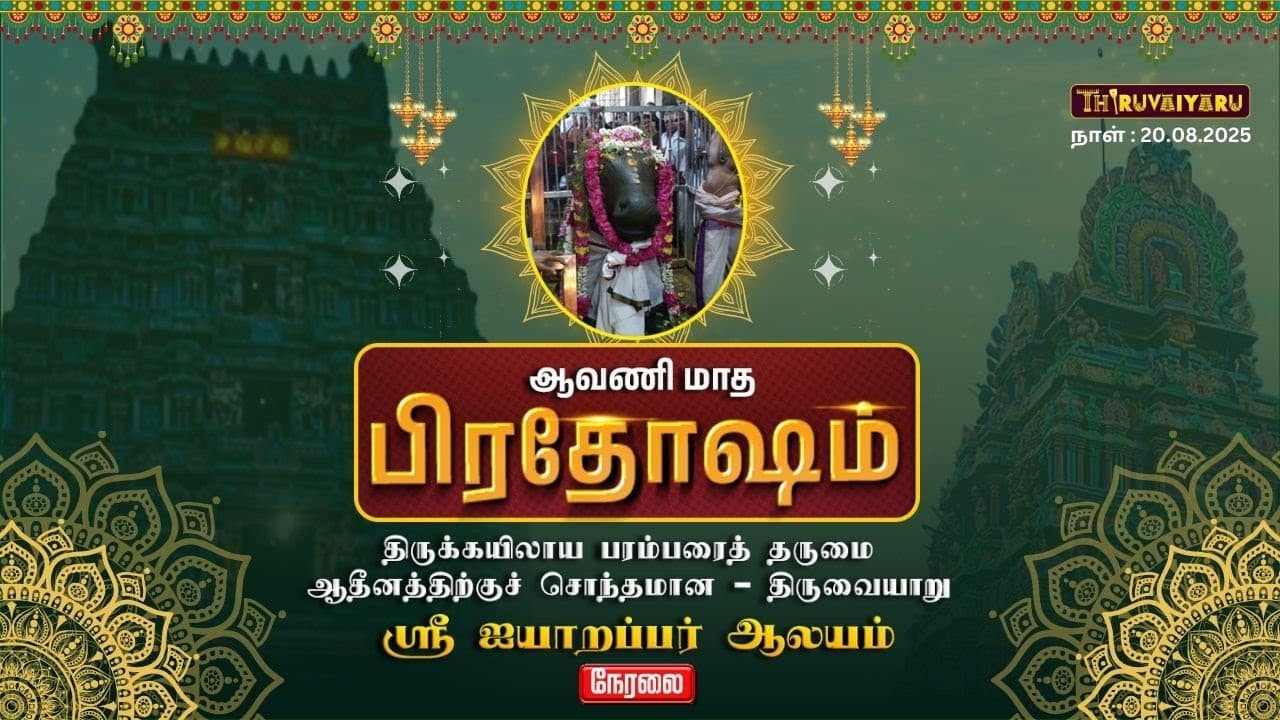 ЁЯФ┤роирпЗро░ро▓рпИ : родро┐ро░рпБро╡рпИропро╛ро▒рпБ | ро╕рпНро░рпА роРропро╛ро▒рокрпНрокро░рпН роЖро▓роп | роЖро╡рогро┐ рооро╛родроорпН | рокро┐ро░родрпЛро╖роорпН | родро┐ро░рпБро╡рпИропро╛ро▒рпБ