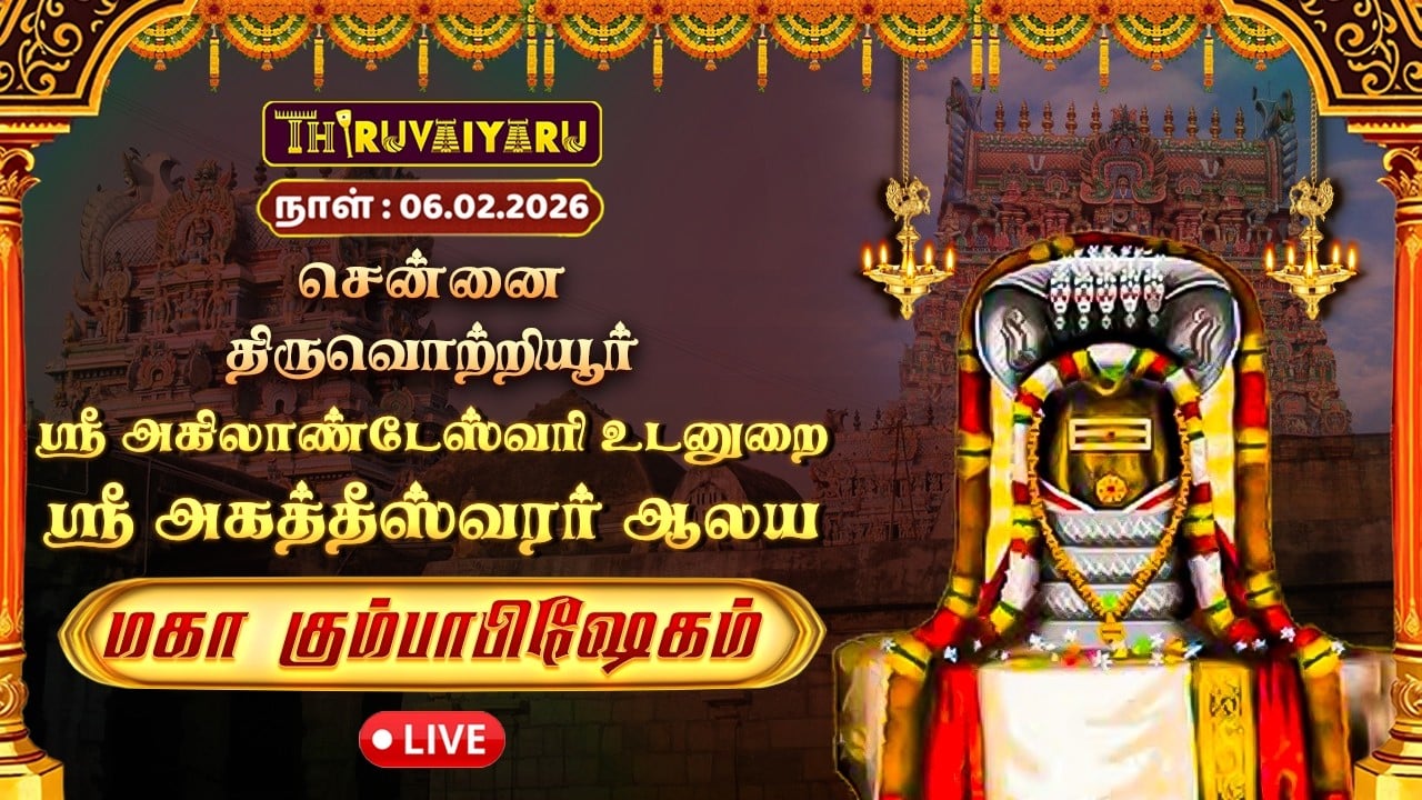 ✨🙏 சென்னை – திருவொற்றியூர் ஸ்ரீ அகிலாண்டேஸ்வரி உடனுறை ஸ்ரீ அகத்தீஸ்வரர் ஆலய மகா கும்பாபிஷேகம் திருவிழாவை பக்தர்களுக்காக நேரலையாக (LIVE) ஒளிபரப்புகிறோம் 🙏✨