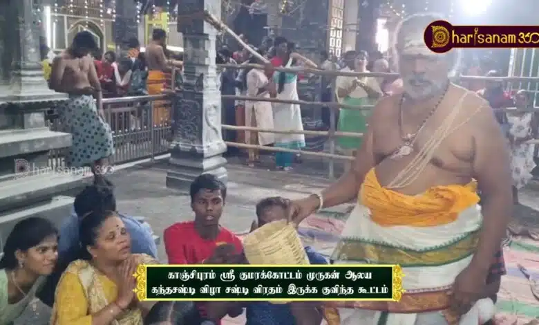காஞ்சிபுரம் ஸ்ரீ குமரக்கோட்டம் முருகன் கோவில் கந்தசஷ்டி விழா சஷ்டி விரதம் இருக்க குவிந்த கூட்டம்
