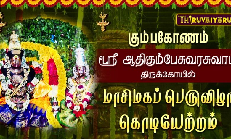🙏✨ கும்பகோணத்தில் உள்ள அருள்மிகு ஸ்ரீ ஆதிகும்பேசுவரர் திருக்கோவிலில் நடைபெறும் மாசிமகப் பெருவிழாவின் புனித கொடியேற்றம் (த்வஜாரோஹணம்) வைபவ காட்சிகள் இவ்வீடியோவில் இடம்பெற்றுள்ளன.