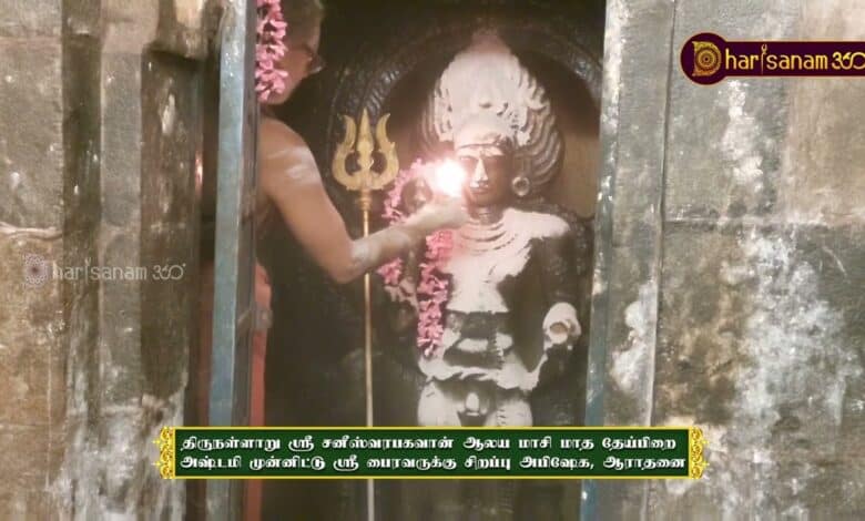 திருநள்ளாறு | ஸ்ரீ சனீஸ்வரபகவான் கோவில் | மாசி மாத தேய்பிறை அஷ்டமி | ஸ்ரீ பைரவருக்கு சிறப்பு அபிஷேக, ஆராதனை | திருவையாறு