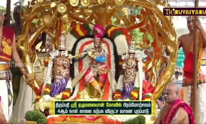 Tirupati Sri Ezhumalaiyan Temple | Bramorchava 4th Day Morning Karpaga Virutcha Vaagana Purappadu | Thiruvaiyaru