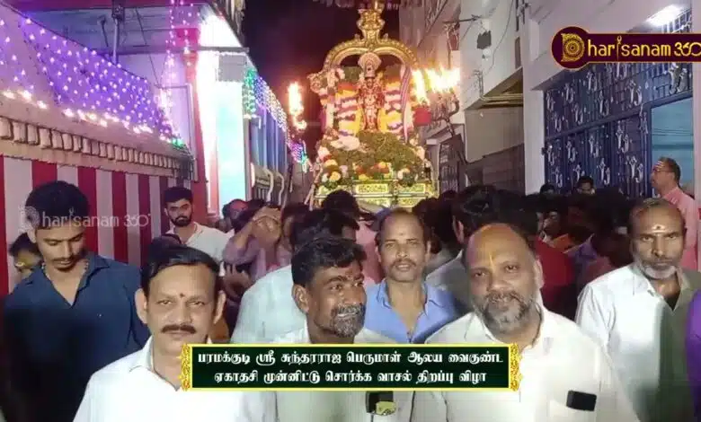 பரமக்குடி | ஸ்ரீ சுந்தரராஜ பெருமாள் ஆலய வைகுண்ட ஏகாதசி முன்னிட்டு சொர்க்க வாசல் திறப்பு விழா | திருவையாறு