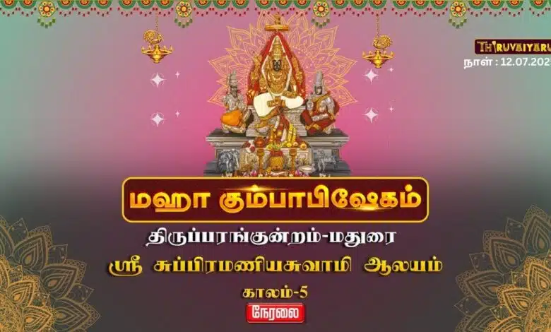 🔴 LIVE: திருப்பரங்குன்றம் அருள்மிகு சுப்பிரமணியசுவாமி ஆலய மஹா கும்பாபிஷேகம் காலம் – 5 | திருவையாறு