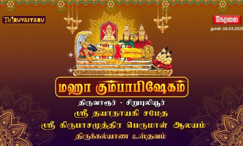 🔴 நேரலை – 108 திவ்ய தேசங்களில் பதினொன்றாவது தலம் | திருவாரூர் | சிறுபுலியூர் | ஸ்ரீ தயாநாயகி சமேத | ஸ்ரீ கிருபாசமுத்திர பெருமாள் ஆலய | மஹா கும்பாபிஷேகம் | திருக்கல்யாணம் | திருவையாறு