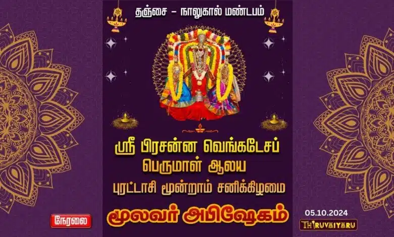 🔴 நேரலை – தஞ்சாவூர் ஸ்ரீ பிரசன்ன வெங்கடேச பெருமாள் கோவில் புரட்டாசி மூலவர் அபிஷேகம் | திருவையாறு