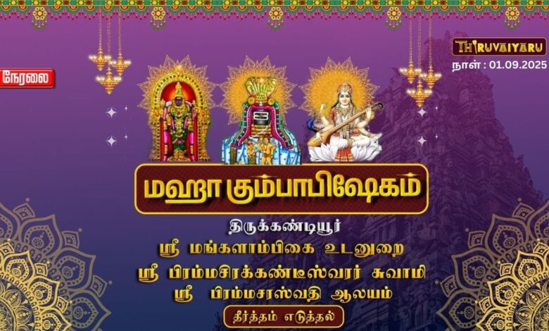 The grand Maha Kumbabishekam of Kandiyur Sri Mangalaambigai with Brahmasirakandeeswarar Temple and Sri Brahma Saraswathi Temple took place on 04 September 2025.