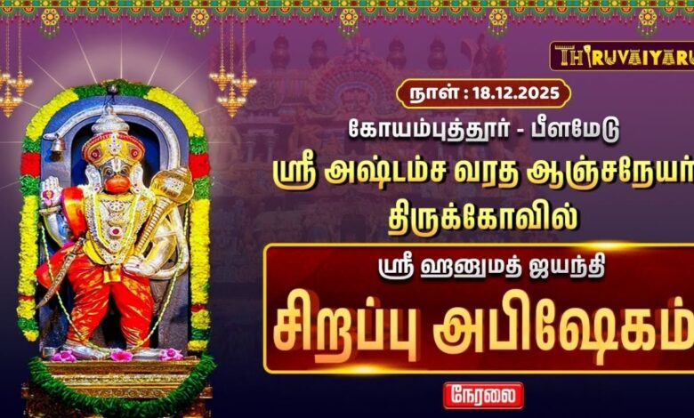 🔴Live : கோயம்புத்தூர் – பீளமேடு ஸ்ரீ அஷ்டம்ச வரத ஆஞ்சநேயர் ஆலய ஸ்ரீ ஹனுமத் ஜயந்தி சிறப்பு அபிஷேகம்