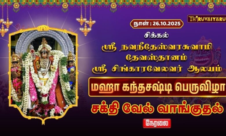 🔴LIVE : சிக்கல் ஸ்ரீ சிங்காரவேலவர் ஆலய மஹா கந்தசஷ்டி பெருவிழா சக்தி வேல் வாங்குதல் | Thiruvaiyaru