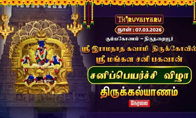 🌺🙏 Kumbakonam – Thirunaraiyur Mangala Sani Bhagavan Temple Sani Peyarchi Thirukalyanam | கும்பகோணம் – திருநறையூர் ஸ்ரீ மங்கள சனி பகவான் ஆலய சனிப்பெயர்ச்சி விழா திருக்கல்யாணம் | Live 🙏🌺