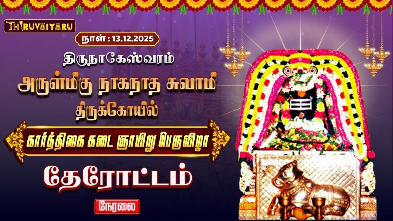 #Thirunageswaram #SriNaganathaswamy #ThirunageswaramTherottam #KarthigaiKadaiNyayiru #KarthigaiPeruvizha #TherottamFestival #TempleCarFestival #DevotionalLive #LiveDarshan #TamilTemple #திருநாகேஸ்வரம் #நாகநாதசுவாமி #திருநாகேஸ்வரம்_தேரோட்டம்