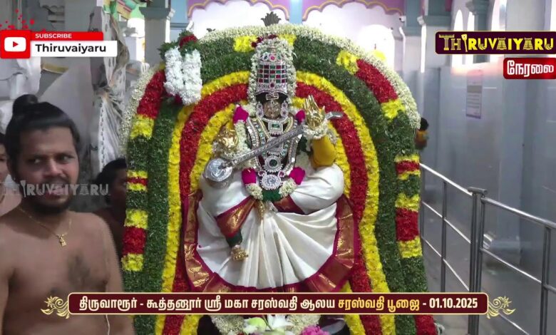 🔴Live : திருவாரூர் – கூத்தனூர் ஸ்ரீ மகா சரஸ்வதி ஆலய சரஸ்வதி பூஜை | Saraswathi Pooja | Thiruvaiyaru