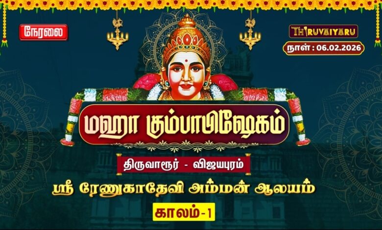 ✨🙏 திருவாரூர் – விஜயபுரம் ஸ்ரீ ரேணுகாதேவி அம்மன் ஆலய மஹா கும்பாபிஷேகம் – காலம் 1 புனித நிகழ்வை பக்தர்களுக்காக நேரலையாக (LIVE) ஒளிபரப்புகிறோம்.