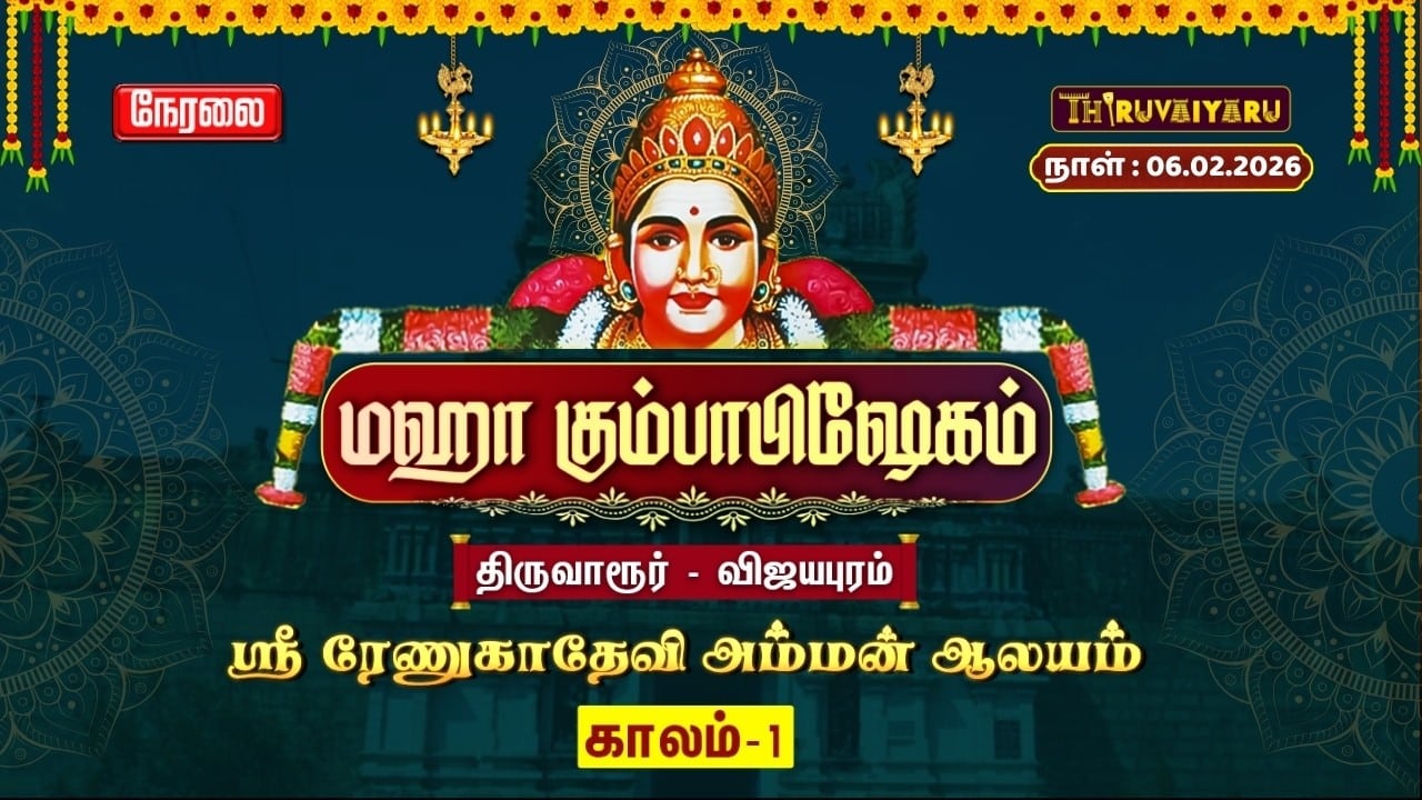 ✨🙏 திருவாரூர் – விஜயபுரம் ஸ்ரீ ரேணுகாதேவி அம்மன் ஆலய மஹா கும்பாபிஷேகம் – காலம் 1 புனித நிகழ்வை பக்தர்களுக்காக நேரலையாக (LIVE) ஒளிபரப்புகிறோம்.