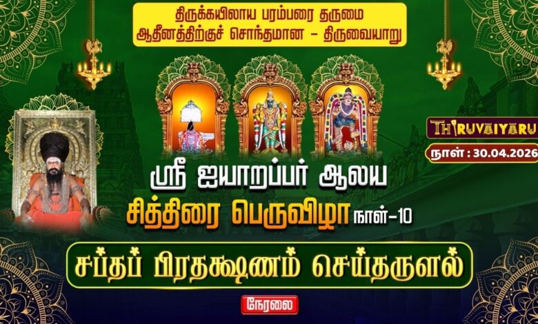 🔴LIVE : திருவையாறு ஸ்ரீ ஐயாறப்பர் ஆலய சித்திரைப் பெருவிழா நாள்-10 சப்தப் பிரதக்ஷணம் செய்தருளல்