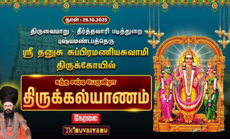 ЁЯМ║ЁЯЩП родро┐ро░рпБро╡рпИропро╛ро▒рпБ – рокрпБро╖рпНропроорогрпНроЯрокродрпНродрпЖро░рпБ ро╕рпНро░рпА родройрпБроЪрпБ роЪрпБрокрпНрокро┐ро░роорогро┐ропроЪрпБро╡ро╛рооро┐ роЖро▓роп роХроирпНрод роЪро╖рпНроЯро┐ рокрпЖро░рпБро╡ро┐ро┤ро╛ родро┐ро░рпБроХрпНроХро▓рпНропро╛рогроорпН | Thiruvaiyaru – Pushyamandapa Theru Sri Dhanusu Subramaniya Swamy Temple Kandha Sashti Festival ThirukkalyanamЁЯЩПЁЯМ║.