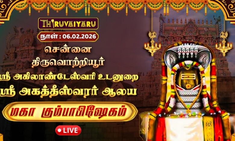 ✨🙏 சென்னை – திருவொற்றியூர் ஸ்ரீ அகிலாண்டேஸ்வரி உடனுறை ஸ்ரீ அகத்தீஸ்வரர் ஆலய மகா கும்பாபிஷேகம் திருவிழாவை பக்தர்களுக்காக நேரலையாக (LIVE) ஒளிபரப்புகிறோம் 🙏✨